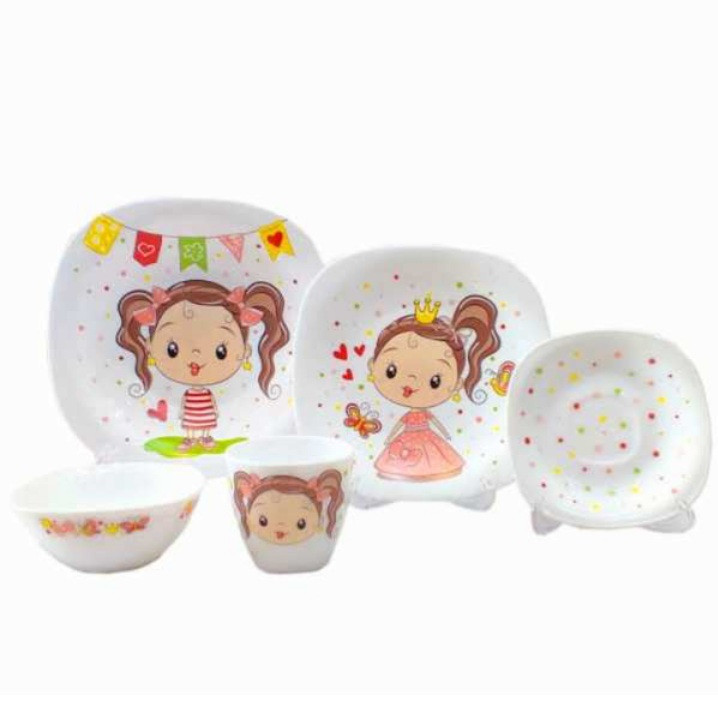 سرویس غذا خوری 5 پارچه کودک پارس اوپال طرح دختر پروانه کد 74