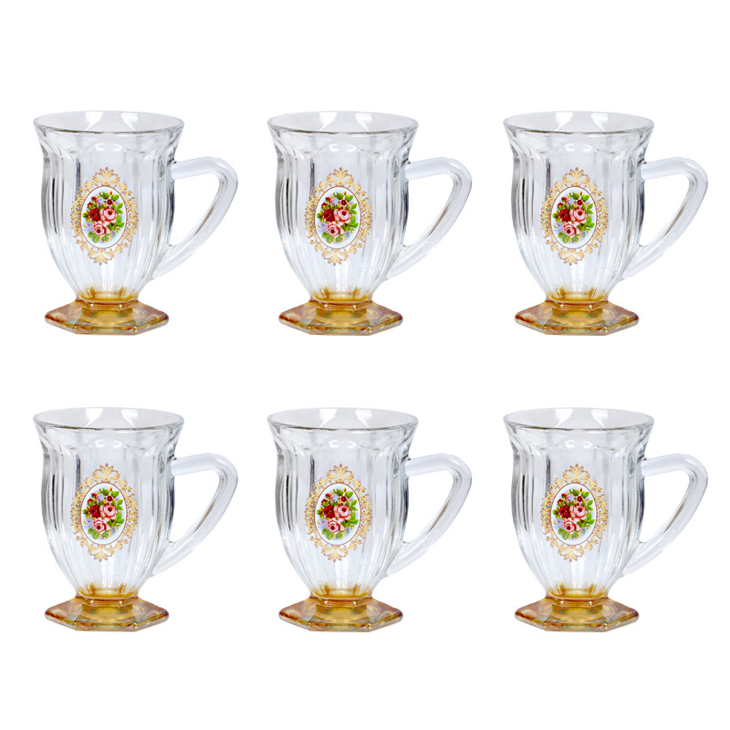 لیوان کاوه مدل مارشال لب طلا بسته 6 عددی