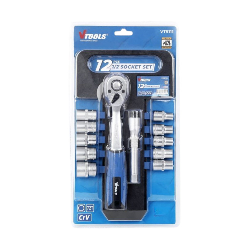 آچار جغجغه ای بلند وی تولز مدل VT5111 سایز 1.2 اینچ مجموعه 12 عددی