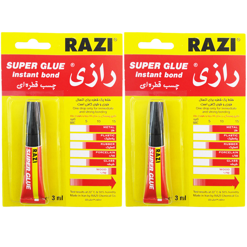 چسب قطره ای رازی مدل Super Glue حجم 3 میلی لیتر بسته 2 عددی