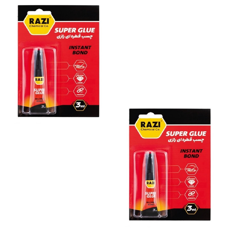 چسب قطره ای رازی مدل سیانوآکریلات حجم 3 میلی لیتر بسته 2 عددی