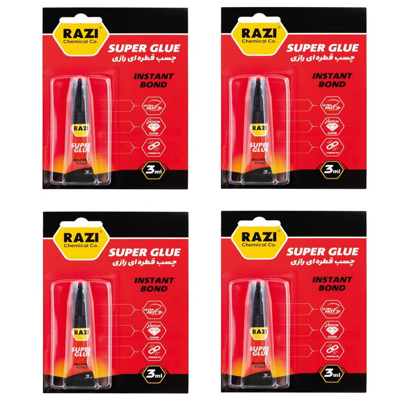 چسب قطره ای رازی مدل Super Glue حجم 3 میلی لیتر بسته 4 عددی