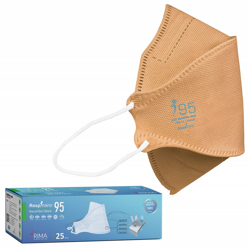 ماسک تنفسی ریما مدل سه بعدی N95 نانو کد Brown-F95 بسته 25 عددی