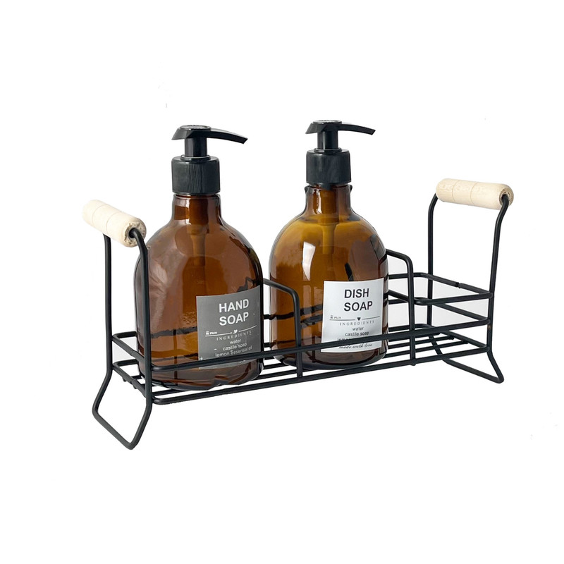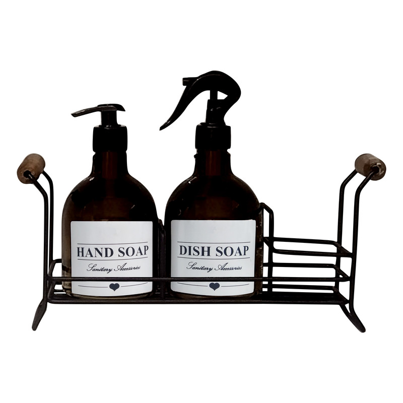 مخزن مایع ظرفشویی مدل line برچسب دار مجموعه دو عددی به همراه استند فلزی