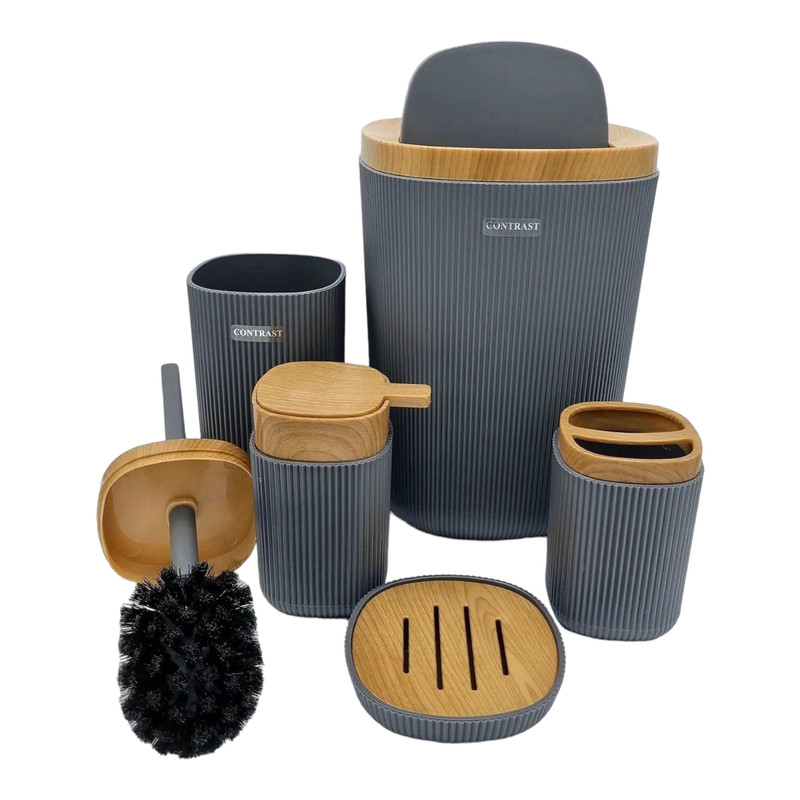 ست سرویس بهداشتی 6 پارچه کنتراست مدل روما شیاردار چوب
