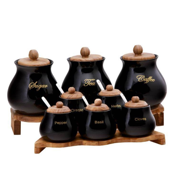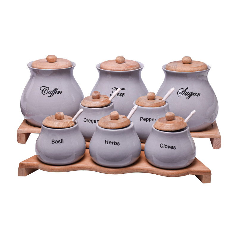 جای ادویه 12 پارچه مدل چوبی و سرامیکی
