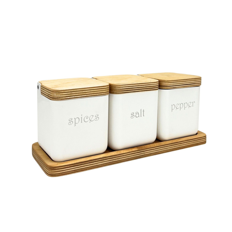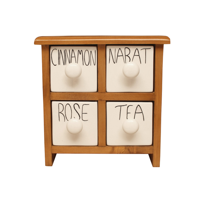 جا ادویه 4 پارچه مدل چوبی و سرامیکی کد Text04
