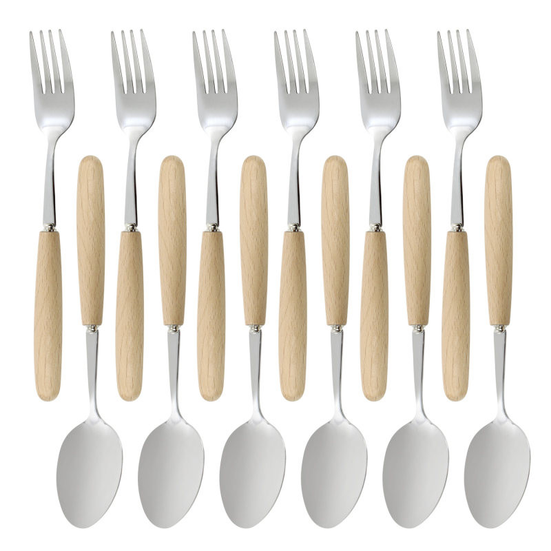 سرویس قاشق و چنگال 12 پارچه مدل دسته چوبی