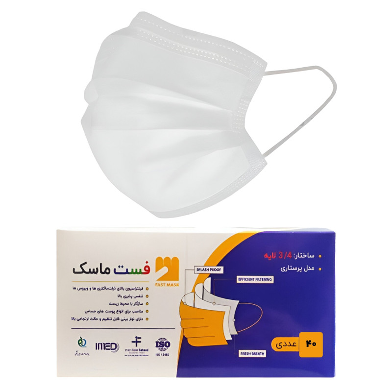 ماسک تنفسی فست مدل سه لایه کش پهن نانو بسته 40 عددی