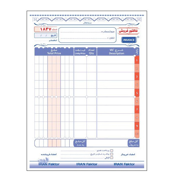 فاکتور فروش مدل 3210 کد 020 بسته 10 عددی