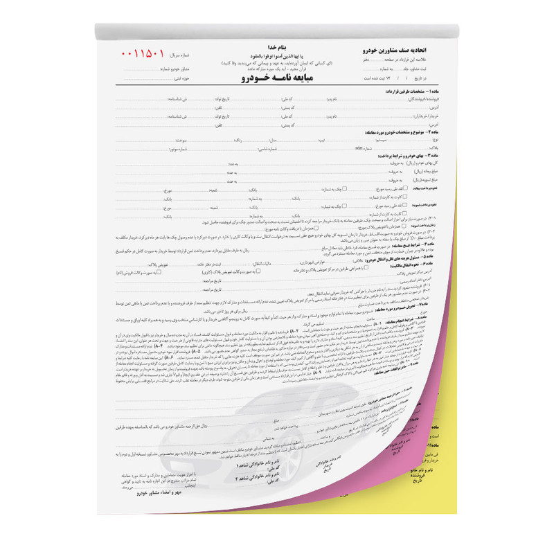 مبایعه نامه خودرو مدل قولنامه ماشین