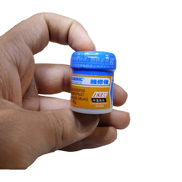 خمیر قلع مکانیک درجه ذوب 183 درجه سانتی گراد وزن 42 گرم اندازه ذرات 3 میکرون