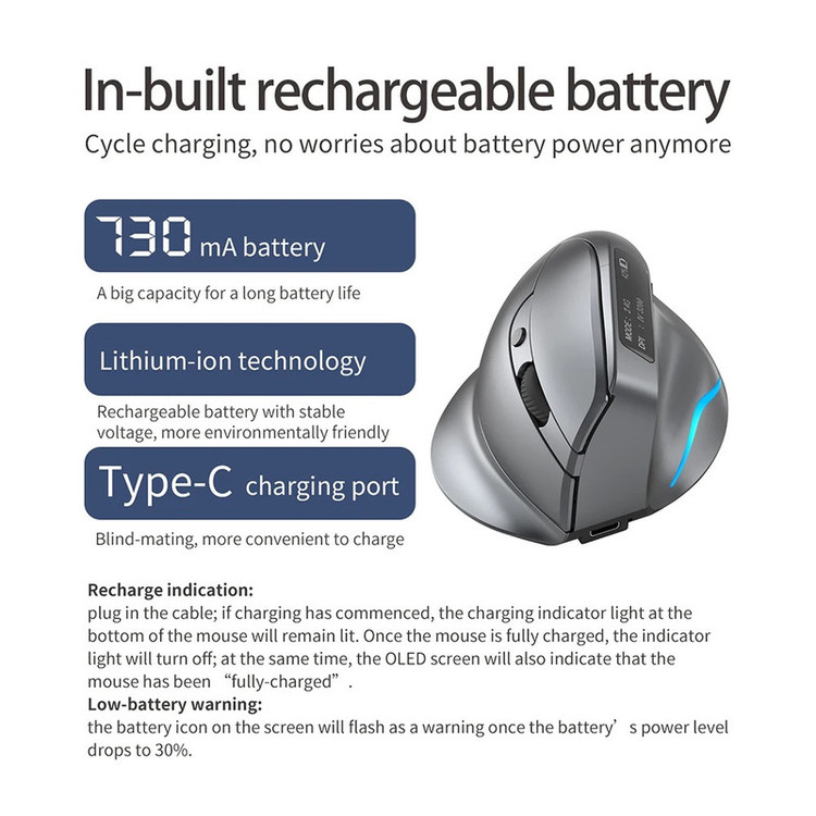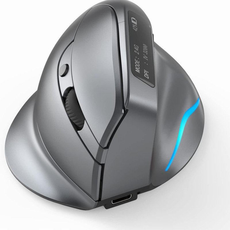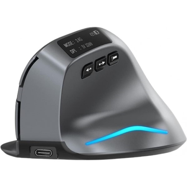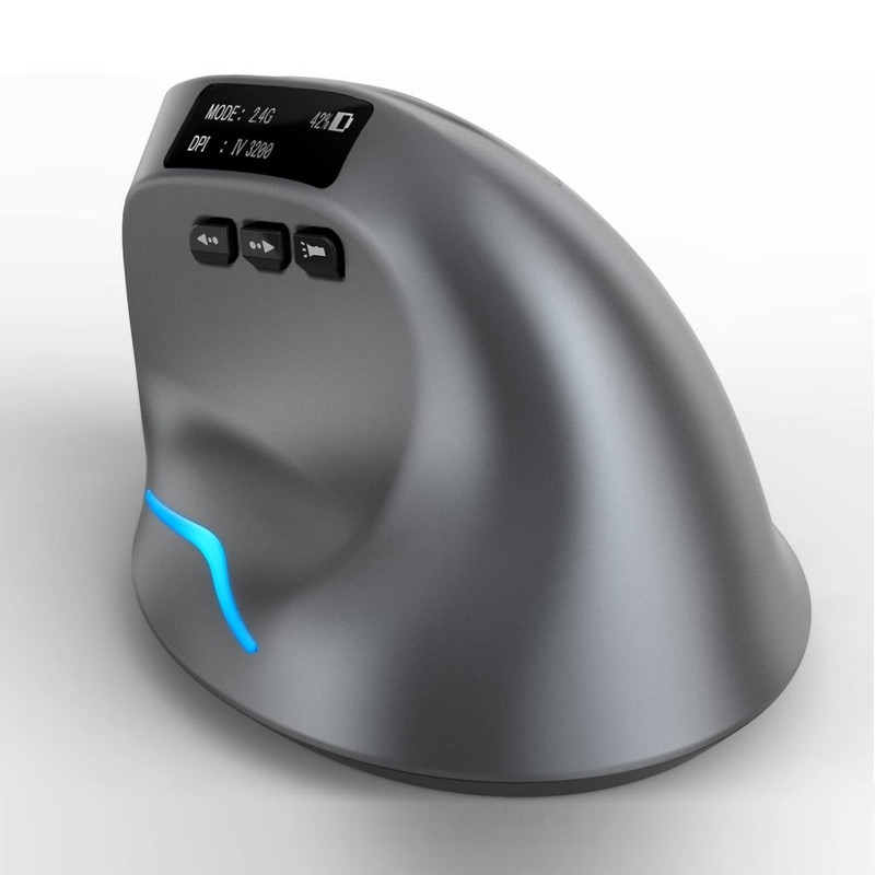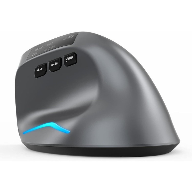 این یک ماوس خاص از نوع عمودی(VERTICAL) است در این نوع ماوس بجای اینکه شما دست خود را با ماوس منطبق کنید،ماوس طوری طراحی شده تا با حالت طبیعی دست شما منطبق باشد،در واقع هدف از ساخت این ماوس این بوده که شما احساس راحتی بیشتری داشته باشید و فشار کمتری به دست شما وارد شود.از جهت دقت این ماوس دقتی برابر با 3200 DPI دارد که دقت و سرعت کلیک بالایی به ماوس میدهد.دقت ماوس را میتوان از طریق کلید تغییر DPI در حالتهای متفاوت قرار داد. کلید روشن خاموش این ماوس سه حالت دارد که در یک حالت چراغ نواری قسمت پایین ماوس روشن و در حالت دیگر خاموش خواهد بود.این ماوس قابلیت اتصال از طریق دانگل usb و بلوتوث به سایر دستگاهها را دارد.برای تغییر مود از بلوتوث به دانگل یا بر عکس باید از کلید دایره ای شکل کوچک زیر ماوس استفاده کنید.کلیدهای این ماوس از نوع بی صدا یا silent هستند.این ماوس دارای یک صفحه نمایش کوچک است که جزئیاتی مانند دقت ماوس،میزان شارژ باتری و نحوه اتصال ماوس را به کاربر نمایش میدهد.همچنین این ماوس دارای کلید مخصوصی جهت تغییر رنگ RGB ماوس میباشد