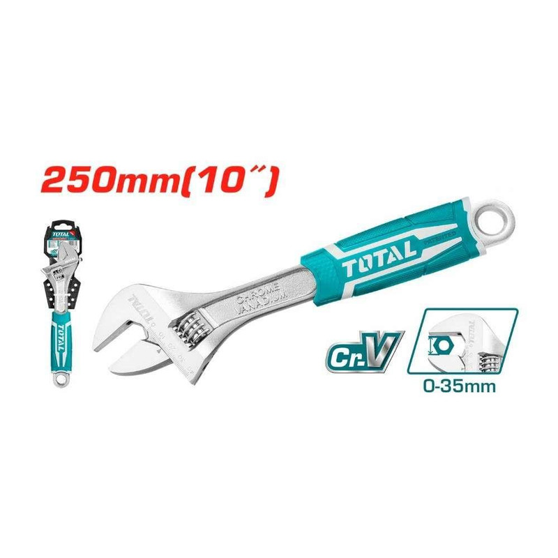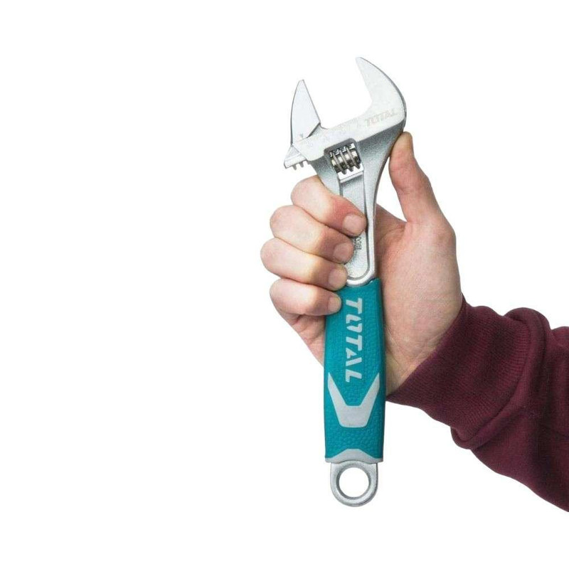 آچار فرانسه 10 اینچ توتال مدل THT101106 محصول شرکت معتبر توتال می باشد.آچارها هم مانند بسیاری از ابزارهای دستی گونههای بسیار مختلف و متنوعی دارند.از آچار فرانسه استفادههای گوناگونی میشود. بیشتر استفادهی این آچار برای باز کردن پیچ یا مهرههایی با سری ششگوش و چهارگوش است. این آچار در سایزهای مختلف و مشخصی ساخته میشود.در این مدل دهانه قابلیت باز شدن 0-35 میلی متر را دارد همچنین فک های آن سخت کاری شدهی ضد زنگ و ضد فرسایش بادوام می باشد که اجازه کار با آن در سخت ترین شرایط را می دهد و پیچ تنظیم فک متحرک آن روان و با دقت و کیفیت بالا می باشد دسته این آچار روکش دار می باشد که ضد تعریق و لغزش می باشد و کار کردن با آن راحت تر می باشد. آچار فرانسه های توتال در سایزهای مختلف توسط مجموعه کیوسک ابزرا عرضه می شود.
