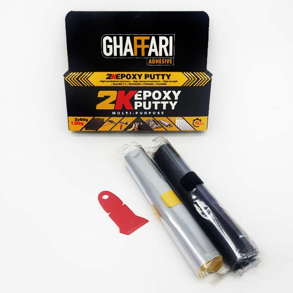 چسب خمیری اپوکسی میل پوکس غفاری با وزن ۱۲۰ گرم که اصطلاحا به آن چسب همه کاره نیز می گویند. این محصول چند منظوره، دو جزئی می باشد و بر پایه اپوکسی با خواص مکانیکی و شیمیایی بالا است. این خمیر برای تعمیر، و آب بندی و پر کردن سوراخ های ایجاد شده در اگزوز اتومبیل ها، رادیاتورها، منبع آب و لوله ها، پلمپ کردن قطعات و ماکت سازی استفاده می شود.