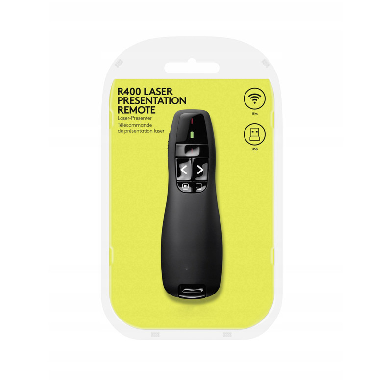 پرزنتر لیزری مدل R400 با طراحی کامل منحصر به فرد در بازار رو نمایی شده است. این دستگاه دارای ابعاد 115x38x27.40 میلی متر بوده و وزنی برابر با 0.5 کیلوگرم دارد. کارایی این دستگاه بسیار مناسب بوده و مشکلات بسیاری از مصرف کنندگان را بر طرف کرده است. این دستگاه دارای لیزر قرمز برای اشاره میباشد و دارای یک گیرنده بی سیم Plug and Play میباشد که برای کارکرد نیازی به نصب هیچگونه نرم افزاری ندارد. دارای تکنولوژی 2.4 گیگا هرتزی بی سیم با برد 15 متر میباشد که دارای دو دکمه عقب و جلو میباشد. همچنین دارای نمایشگر باتری نیز هست.جمع بندیدر کل میتوان پرزنتر لیزری مدل R400 را به عنوان یک پرزنتر بسیار مناسب و ایده آل معرفی کرد که در دانشگاهها، ادارات و مراکز آموزشی بسیار کاربرد دارد.