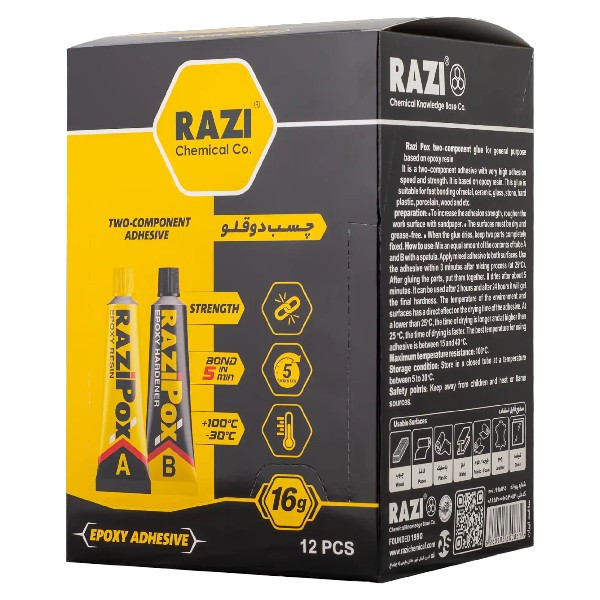 چسب دوقلو مات رازی مدل POX زرد با حجم ۱۶ گرم، یکی از چسب های دو جزئی محبوب و قدرتمند در بازار ایران است. این چسب با فرمولاسیون خاص خود، برای اتصال قطعات مختلف با قدرت بالا و ظاهری مات طراحی شده و انتخابی حرفه ای برای مصارف خانگی، عمومی و فنی به شمار می رود. اگر به دنبال چسبی همه کاره و قابل اعتماد هستید، این مدل از چسب دوقلو رازی یکی از بهترین گزینه هاست.