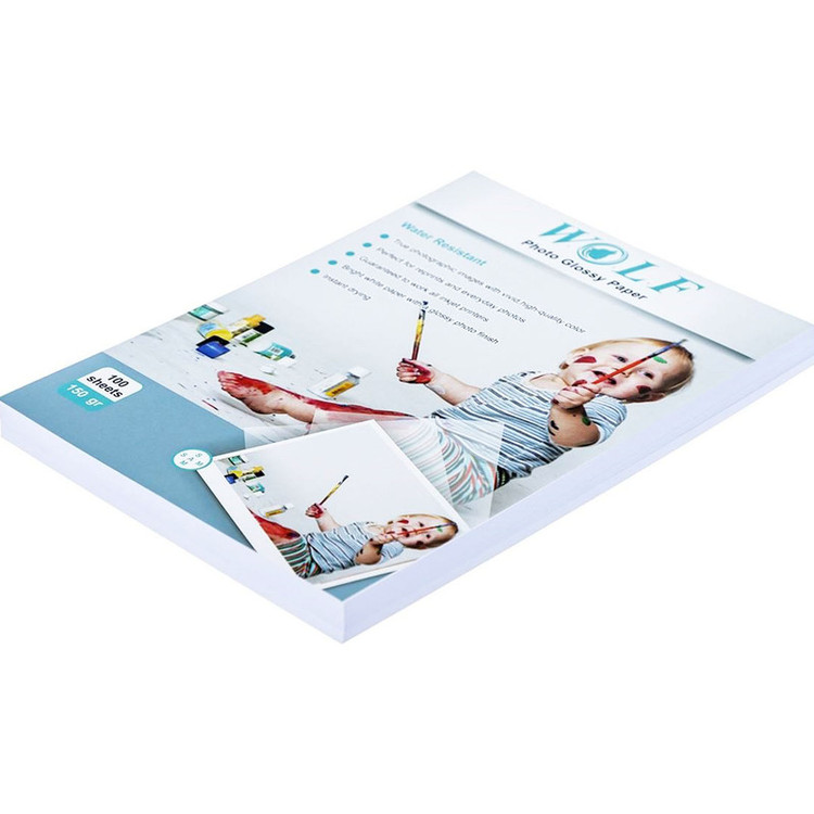 کاغذ فتو گلاسه 150 گرم ولف (wolf)؛ سایز A4 در بسته بندی های 100 عددی ، قابل استفاده در دستگاه های جوهرافشان می باشد. فتوگلاسه 150 گرم ولف با کیفیت بسیار بالا تری در مقایسه با دیگر کاغذهای هم ردیف خود می باشد و ضخامت بالایی دارد و همچنین دارای رویه براق می باشد که مناسب برای چاپ عکس، بدون پخش شدن جوهر می باشد. از کاغذ فتوگلاسه 150 گرم ولف می توان در عکاسی ها، کافی نت ها، آموزشگاه ها، مدارس و مراکز دیگر برای چاپ عکس و کاتالوگ و بروشور استفاده نمود.