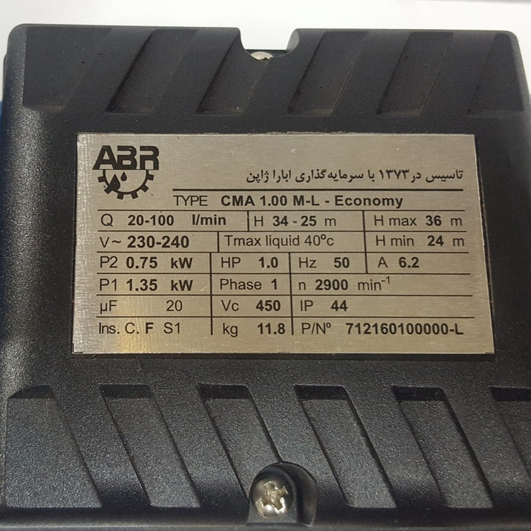 نوع موتور دستگاه: الکتروپمپ تکفاز