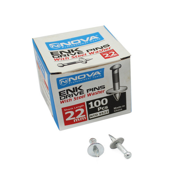 میخ و چاشنی نووا سایز 22 میلی متر مناسب برای استفاده در فلزات بسته 100 عددی با چاشنی قرمز