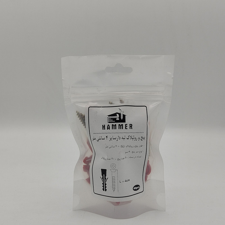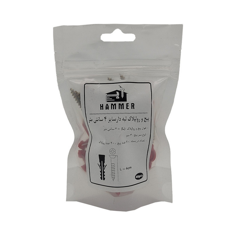 سایر توضیحات: ست بندی زیپ دار با برند هامر مطابق تصویر ، دارای طول 4 سانتی متر ، بسته بندی 40 عددی ( 20 عدد پیچ و 20 عدد رولپلاک ) ، آبکاری طلایی (( توجه : لطفا جهت خرید به مشخصات فنی ترسیم شده و ذکر شده در تصاویر توجه کنید))