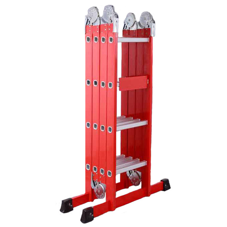 قفل یا ضامن با کیفیت شرکتی وزن سبک نردبان پله های پهن و جای پای راحت تمام آلومینیوم رنگ کوره ای با کیفیت این نردبان 12 حالت میگیرد و جزء نردبانهای چندکاره به شمار میآید