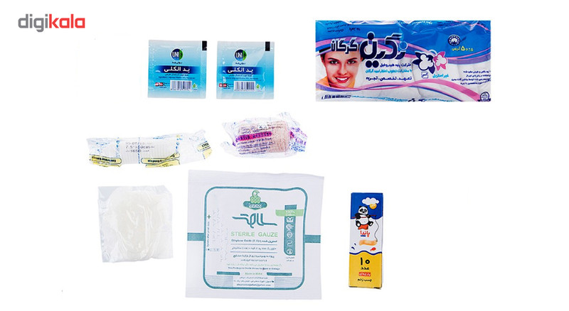 محتویات جعبه کمکهای اولیه: چسب زخم , گاز استریل , باند کشی , باند زخم , پد الکلی , پنبه