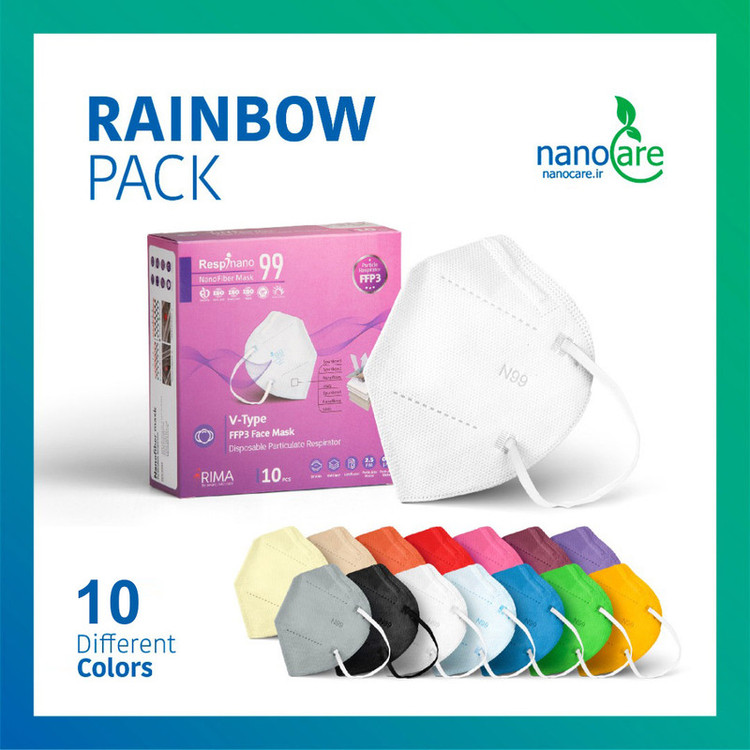 ماسک تنفسی ریما مدل وی تایپ N99 نانوالیاف کد RainBow-V99 بسته 10عددی