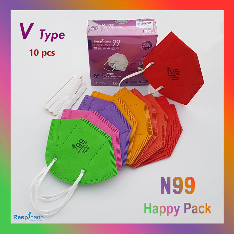ماسک تنفسی ریما مدل وی تایپ N99 نانوالیاف کد RainBow-V99 بسته 10عددی