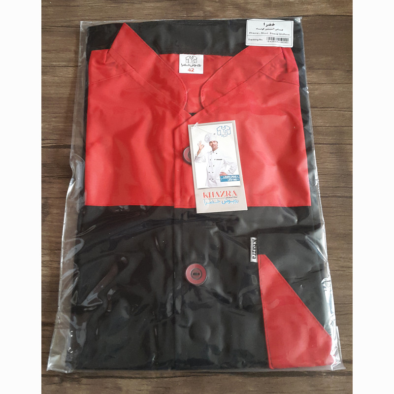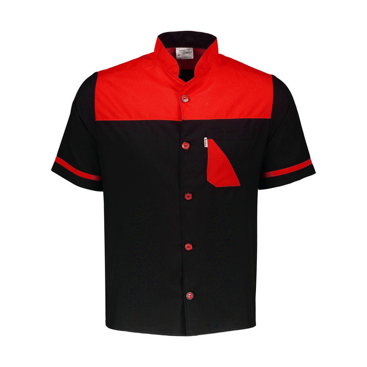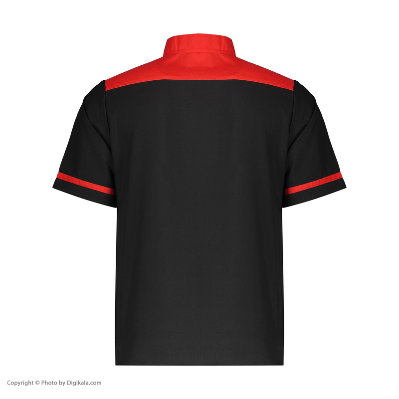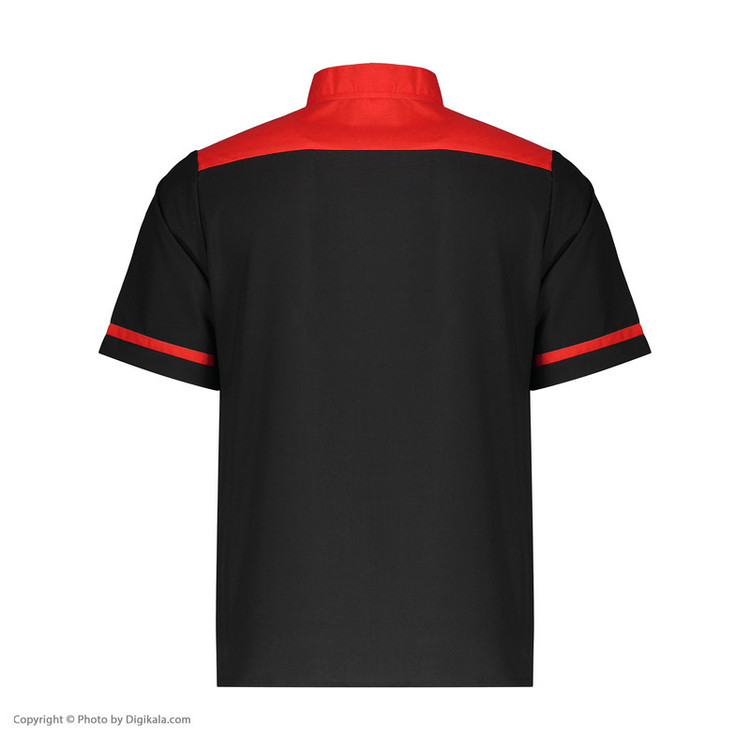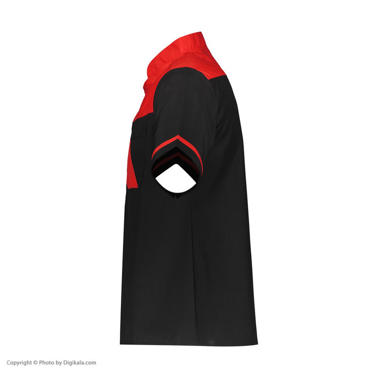 پارچه ترگال مشکی + قرمز آستین کوتاه دارای یک جیب بالا