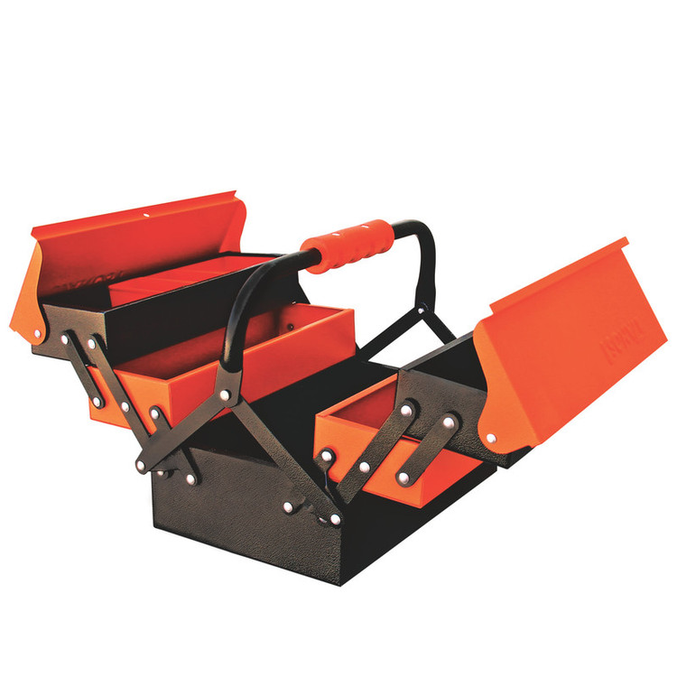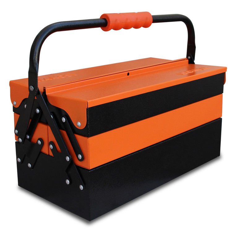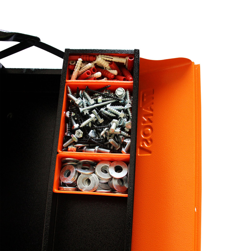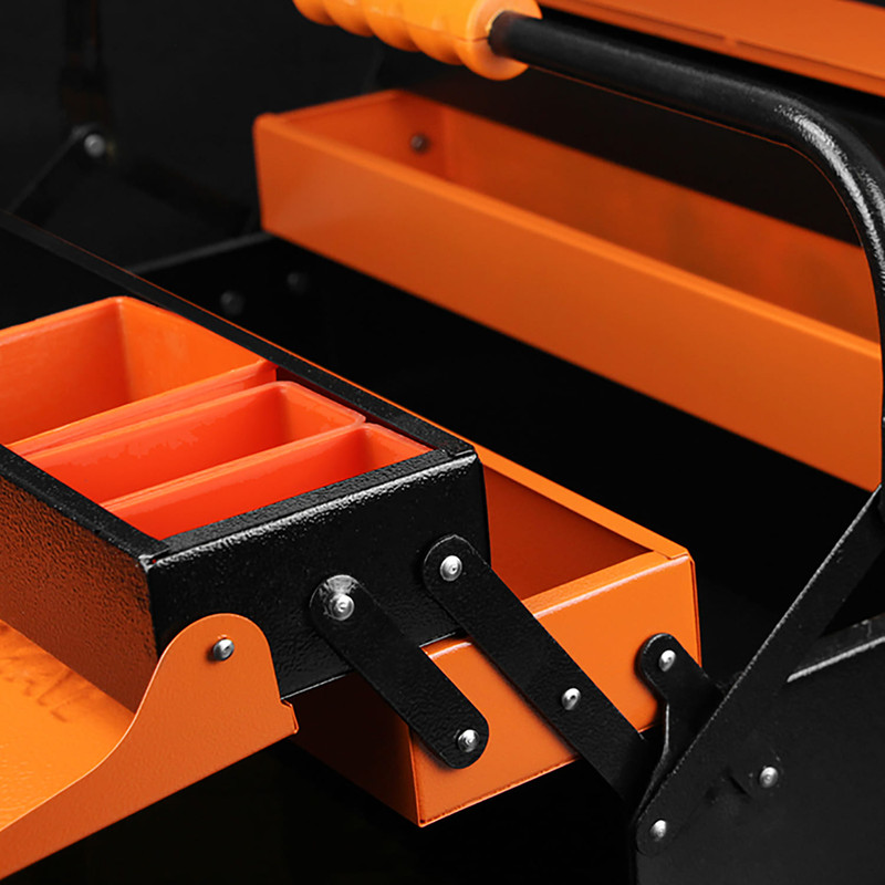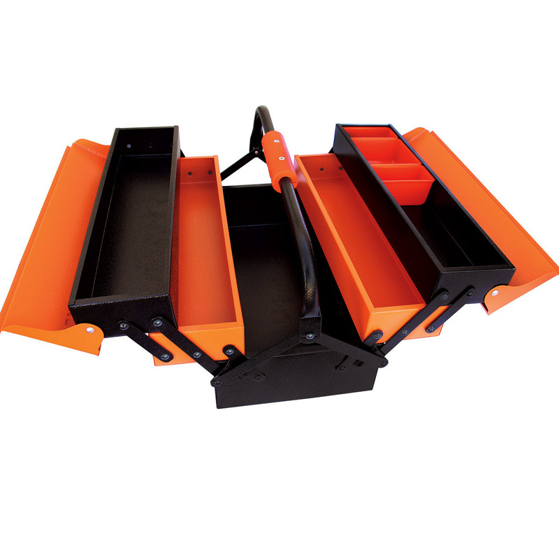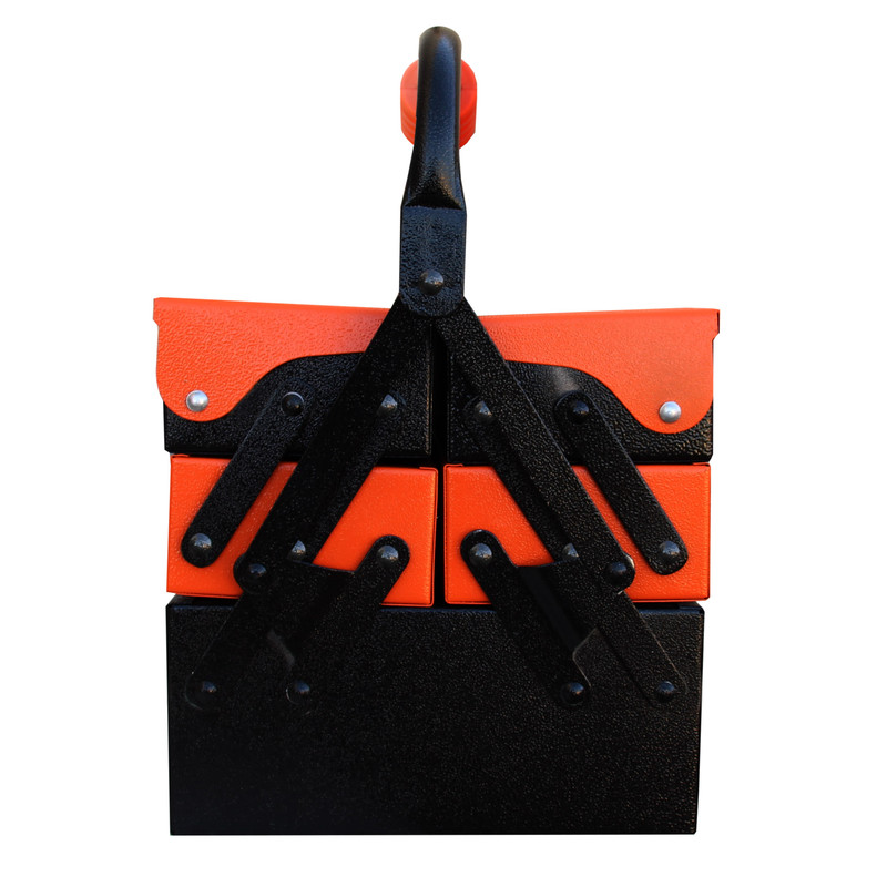 _جعبه ابزار 40 سانتی متر _پرچ های بسیار محکم _جنس دسته ار جنس ABS _مجهز به پالت های پلاستیکی برای جداسازی قطعات ریز _قابلیت بازو بسته شدن به صورت اتوماتیک _دارای پوشش رنگ الکترواستاتیک ضد خش