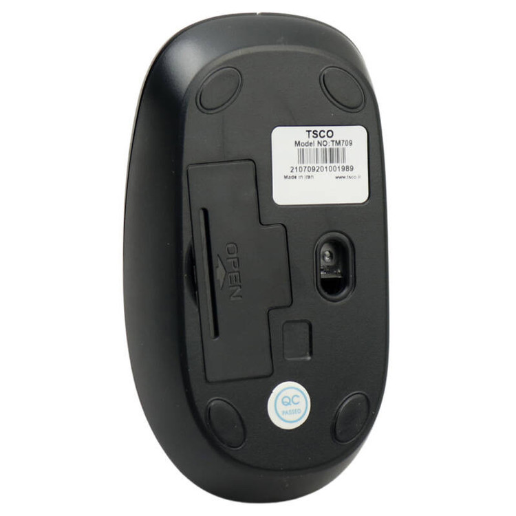 اتصال ماوس بی سیم مدل TM 709W برند تسکو، از طریق پورت USB و به واسطه ی یک دانگل صورت میگیرد. سنسور (حسگر) این ماوس از نوع اپتیکال است و قابلیت پشتیبانی تا حداکثر فاصله ی 10 متر را دارد. دقت حسگر ماوس بی سیم TM 709W تا 1200DPI است که شما قادر خواهید بود با سرعت مطلوبی اشاره گر ماوس تان را بر روی صفحه حرکت دهید .