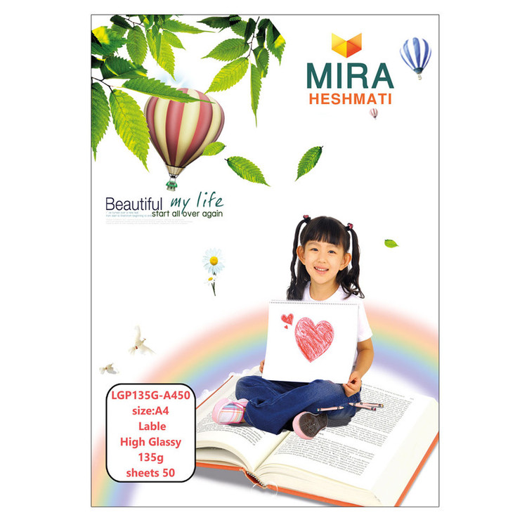 کاغذ فتوگلاسه پشت چسب دار (لیبل) Mira میرا 135 گرمی براق 50 برگی مخصوص پرینترهای جوهرافشان : لیبل Label یا برچسب یا همان کاغذ پشت چسب دار در سایزهای A4 و A3 در دو نوع مات و براق جهت پرینترهای لیزری و جوهر افشان در گرماژ 135 تحت برند " میرا" بسته بندی و توزیع می گردد . توصیه می شود در تبلیغات به تعداد محدود و یا برچسب محصولات از این نوع کاغذ لیبل برای پرینترهای جوهر افشان و یا لیزری استفاده نمایید . لازم به توضیح است به دلیل تفاوت در نوع تکنولوژی چاپ در پرینترهای لیزری و جوهر افشان ,نوع لیبل برای پرینترهای لیزری و جوهر افشان متفاوت است و بسته به نوع پرینتر باید لیبل مخصوص پرینتر لیزری یا لیبل مخصوص پرینتر جوهر افشان را تهیه نمود .