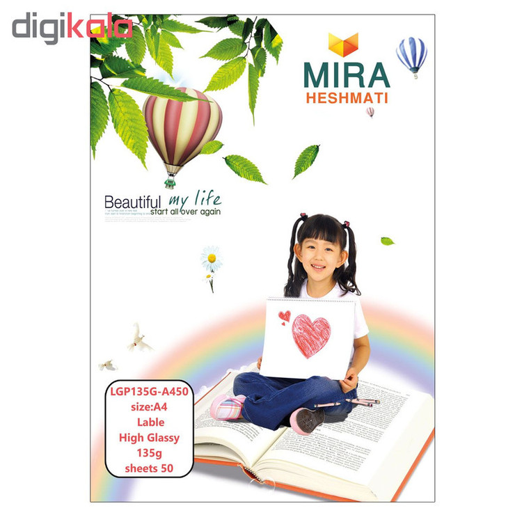 کاغذ پشت چسبدار فتوگلاسه جوهرافشان میرا مدل LGP135G-A450 سایز A4 بسته 50 عددی