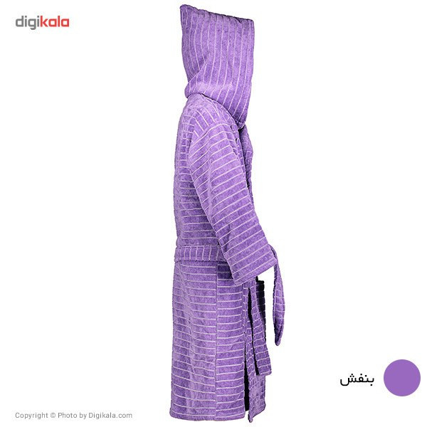 حوله پالتویی «Barghelame»، (برق لامع) مدل «Lozan»با طرح راهراه و طراحی زیبا برای فرزند نوجوان شما طراحی شده است. این حوله با ارتفاع 100 سانتیمتر از شانه تا پایین برای افرادی با قد 130 تا 150 مناسب است. حوله دارای کلاه بوده و با کمربند بسته میشود. اگر بعد از حمام گلسر و یا سنجاقی دارید که نگران گم شدن آن هستید، با داشتن دو جیب دیگر دچار مشکل نخواهید شد. میتوانید لوازم خود را در جیب حوله قرار دهید. برای خشک کردن موهای خود نیز هیچ نیازی به حوله اضافی ندارید. بهوسیله کلاه حوله پالتویی برق لامع موهای شما در کمترین زمان خشک خواهد شد. جنس این محصول به گونهای است که هر دو روی آن قابلیت آبگیری دارد و با مشکلات پرزدهی انواع دیگر حولهها مواجه نخواهید شد. زیرا کیفیت این حوله پالتویی به حدی خوب است که هیچ پرزی به تن و موهای شما نخواهد چسبید. برند برق لامع یکی از قدیمیترین تولید کنندگان حولههای پالتویی، دستی، حمام و استخری است. تنوع طرح و رنگ در این محصولات به حدی زیاد است که دست خالی از فروشگاههای عرضه این محصول خارج نخواهید شد.