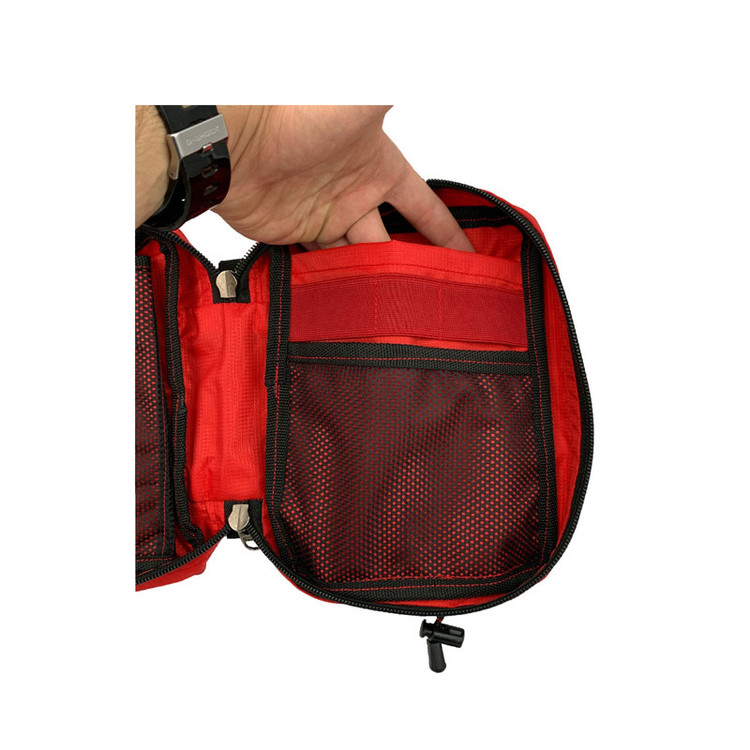جنس پارچه این کیف آب گریز و ضد آب بوده و برای تمام وسایل امداد فضای دقیق و به خصوصی تعبیه شده