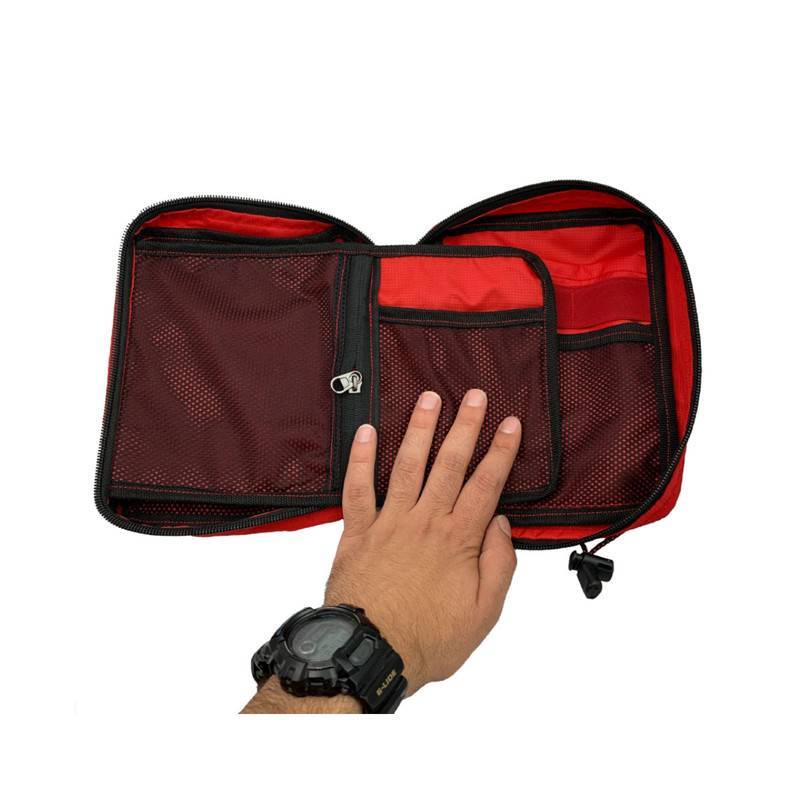 جنس پارچه این کیف آب گریز و ضد آب بوده و برای تمام وسایل امداد فضای دقیق و به خصوصی تعبیه شده