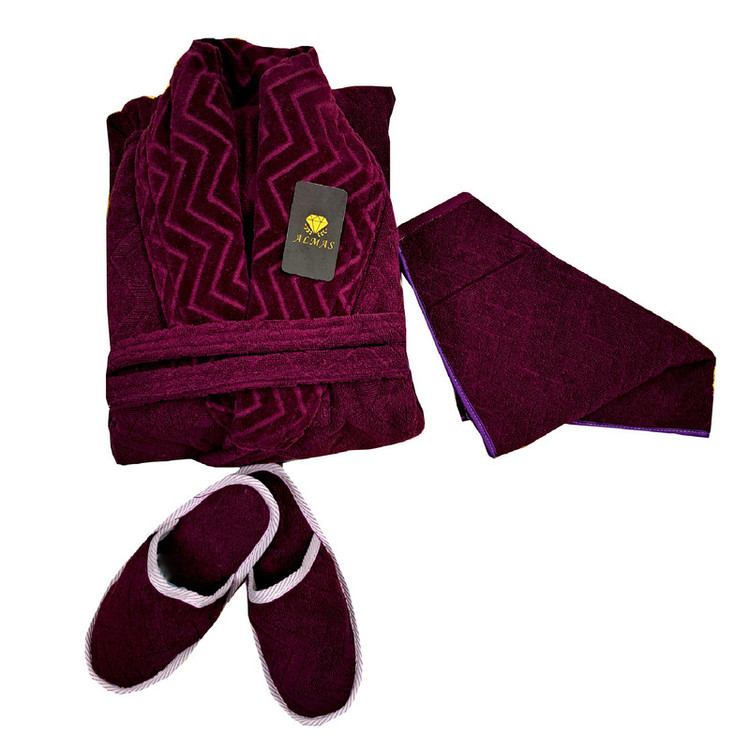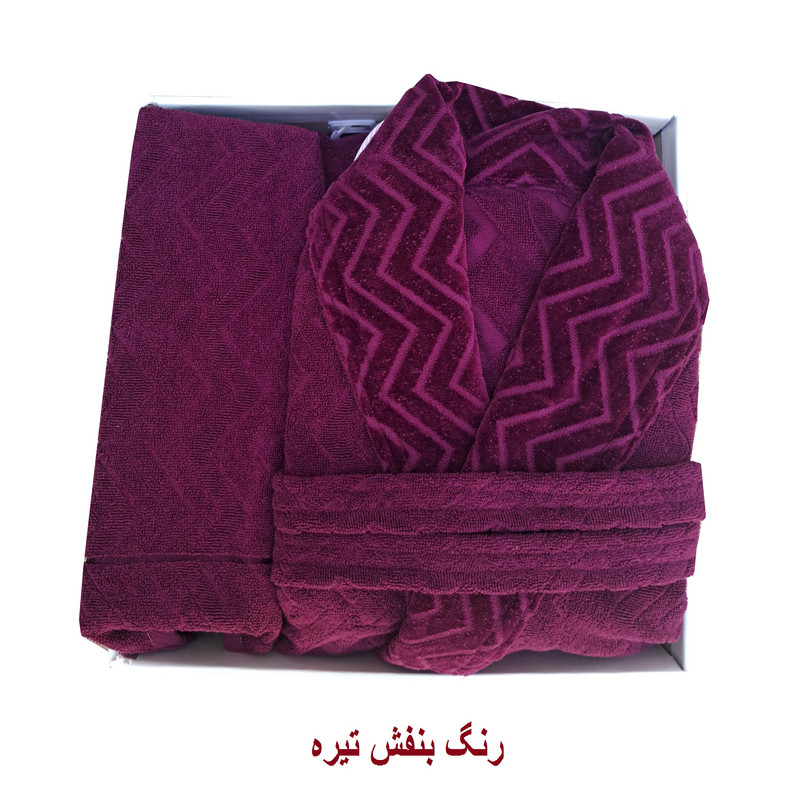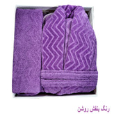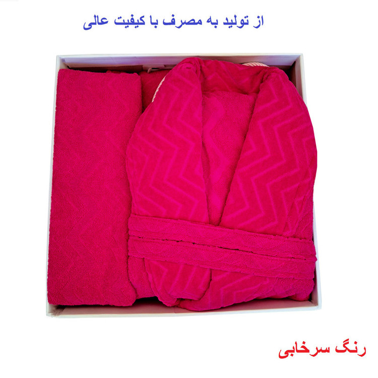 سرویس حوله پالتویی 4 تکه الماس بافته شده از بهترین نخ پنبه و دارای جنس ضخیم و تنوع رنگی زیبا بدون پرز دهی و رنگ دهی می باشد این سرویس دارای یک پالتو و یک جفت روفرشی و حوله دستی و کمربند می باشد.سایز آن از از سر شانه تا پایین 125 سانتی متر و عرض آن 136 سانتی متر می باشد.