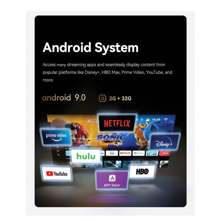ویدئو پروژکتور ونبو WANBO DaVinci 1 رزولوشن فول اچ دی ، با وایرلس داخلی با سیتم عامل اندروید داخلی Android 9، WiFi 5G/2.4G، گواهینامه نامه Netflix، گواهی Widevine DRM L1، فوکوس خودکار، تصحیح خودکار کیستون، تناسب خودکار صفحه نمایش ویدئو پروژکتور ایده آل برای سینمای خانگی و گیمینگ است.
