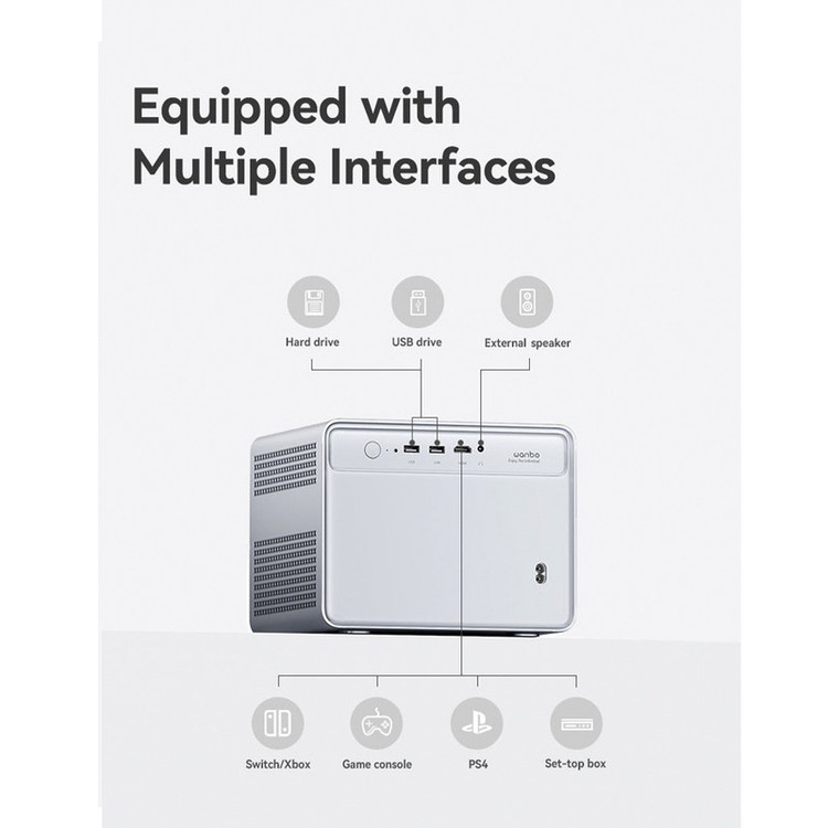 ویدئو پروژکتور WANBO DaVinci 1 به بلندگوهای استریو HiFi 2×8W مجهز شده است تا جلوه های صوتی واضح تری را در حین مشاهده به تصویر اضافه کند و تجربه تماشایی فراگیر و فراگیر را ایجاد کند. نه تنها می توانید از جزئیات صوتی فیلم در حین تماشا لذت ببرید، بلکه بهتر می توانید در محتوای چند رسانه ای مانند موسیقی و بازی غرق شوید.