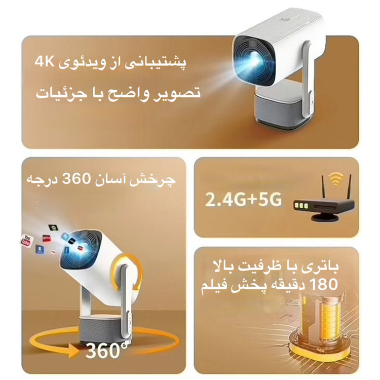 ویدئو پروژکتور اندرویدی مدل شارژی کد K2