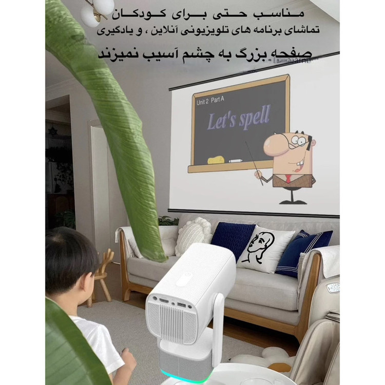 ویدئو پروژکتور اندرویدی مدل K2 یک ویدئو پروژکتور کوچک با کیفیت بالا، وزن سبک و قابل حمل آسان برای استفاده در مکان مختلف مناسب است. این مینی پروژکتور میتواند تصاویر را با رزولوشن Full HD نمایش دهد. به این ترتیب تصاویر پخش شده توسط دستگاه کاملا واضح بوده و رنگ ها به صورت طبیعی و درخشان دیده می شوند. این مینی پروژکتور دارای سیستم عامل Android 11 است و بدون نیاز به سیستم لپ تاپ و یا کامپیوتر میتواند مستقیما به اینترنت وصل شود تا بتوانید به راحتی برنامه یا محتوای مورد نظر خود را دانلود کنید.با وضوح تصویر بالا به شما تصاویر واضح ارائه میکند. با طراحی زیبا و مدرن خود به شما تجربه سینمایی فوق العاده در خانه می دهد، فیلم تماشا کنید و از مهمانی ها لذت ببرید. از قابلیت های مهم این دستگاه اتصال بیسیم آن هست که میتوانید گوشی های اندرویدی و آیفون خود را به طور مستقیم و بدون سیم به آن متصل کنید و تصویر دیوایس خود را روی پرده یا دیوار نمایش دهید.