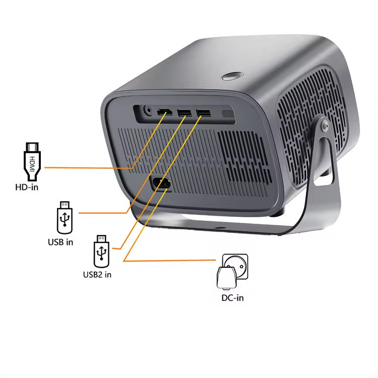 و همچنین گرافیک Mali-G31 support OpenGL ES3.2、Vulkan 1.1 and OpenCL2.0می باشد که باعث عملکرد عالی این دستگاه شده است.این ویدئو پرژکتور تصویری با ابعاد 30 تا 200 اینچ را برای شما از 0.8 تا 4 متری فراهم می کند.با استفاده از اسپیکر 5 واتی صدای ایده آل خروجی برای شما فراهم شده است.قابلیت تغییر زاویه 360 درجه باعث شده به راحتی تصویر را روی دیوار یا روی سقف برای شما ایجاد نماید.این پروژکتور دارای2 پورت USB و یک پورت AUX و HDMI نیز می باشد.برق این دستگاه از برق شهری 110-220V تامین می شود.به جرات می توان گفت جدیدترین نسل ویدئو پرژکتور های موجود در بازار در اختیار شما قرار داده شده است.حافظه داخلی 8 گیگ و رم 1 گیگ برای این ویدئو پرژکتور تعبیه شده است.این دستگاه از بلوتوث ورژن 5 نیز پشتیبانی می کند.همچنین از قابلیت Electric Focus نیز پشتیبانی می کند.