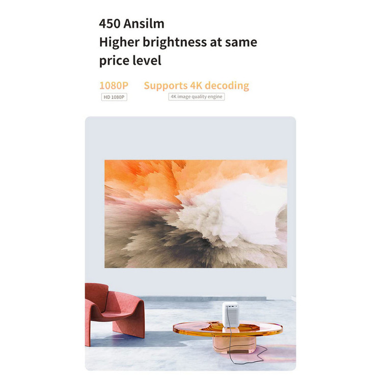 در حالی که در مدل پیشین این ویدیو پروژکتور از شدت نور 200 آنسی لومن فراتر نمیرفت، در این مدل Wanbo T4 موفق به ارائه 450 انسی لومن میشود که برای پروژکتوری در این محدوده قیمت قطعا بالاتر از میانگین بازار است.