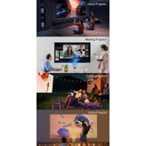 ویدئو پروژکتور بنیوس مدل BE-VP09 نسل جدید ویدئو پروژکتورها با پشتیبانی از سیستم عامل اندروید ورژن 11 می باشد.این ویدئو پرژکتور دارای سی پی یو قوی چهار هسته Quad-core ARM Cortex-A53 و همچنین گرافیک Mali-G31 supports OpenGL ES3.2,Vulkan 1.1,and OpenCL2.0 می باشد که باعث عملکرد عالی این دستگاه شده است.این ویدئو پرژکتور تصویری با ابعاد 40 تا 130 اینچ را برای شما از 0.9تا 4 متری فراهم می کند.لامپ به کار رفته در این پرژکتور 60 وات می باشد.با استفاده از اسپیکر 5 واتی صدای ایده آل خروجی برای شما فراهم شده است.صدای فن داخلی آن دارای نویز کمتر از 25 دسی بل است که ایده آل است.قابلیت تغییر زاویه 180 درجه باعث شده به راحتی تصویر را روی دیوار یا روی سقف برای شما ایجاد نماید.این پروژکتور دارای پورت USB و AUX و HDMI نیز می باشد.برق این دستگاه از برق شهری 110-220V تامین می شود.به جرات می توان گفت جدیدترین نسل ویدئو پرژکتور های موجود در بازار در اختیار شما قرار داده شده است.حافظه داخلی 8 گیگ و رم 1 گیگ برای این ویدئو پروژکتور تعبیه شده است.