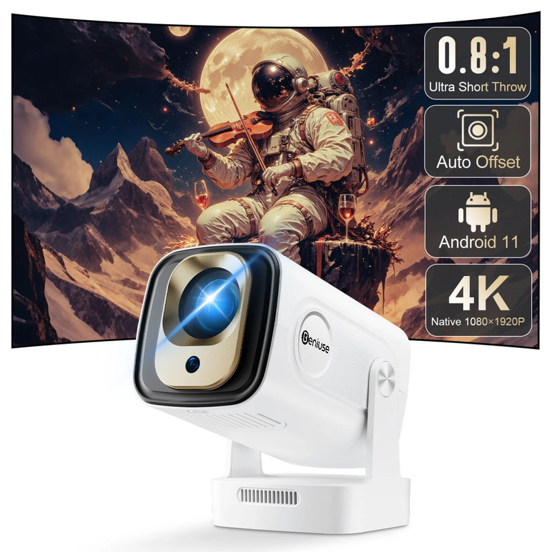 یکی ار ویدئو پروژکتورهای کاملا ارتقا یافته از برند بنیوس با آپشن های جذاب یقینا ویدئو پروژکتور بنیوس مدل BE-VP12 می باشد.این محصول دارای CPU با مشخصات Allwinner H713 و Quad-core ARM Cortex-A53 می باشد همچنین دارای گرافیک قوی Mali-G31 supports OpenGL ES3.2,Vulkan 1.1,and OpenCL2.0 است.این ویدئو پروژکتور دارای سیستم عمل اندروید 11 می باشد که میتوانید نرم افزار های اندروید را مانند فیلیمو و فیلم نت و یوتیوب و .... روی آن نصب نمایید و از قابلیت اتوفوکوس پشتیبانی می کند.ورژن بلوتوث به کار رفته در این ویدئو پروژکتور نسخه 5.4 است که سرعت و کیفیت ارتباط را بالا برده است.این محصول دارای 8 گیگ حافظه داخلی و 1 گیگ رم می باشد.این محصول دارای پورت ورودی USB و HDMI می باشد.پشتیبانی باز وای فای WiFi6 امکان اتصال اینترنت با سرعت بالا را برای شما فراهم می کند.این محصوا دارای اسپیکر داخلی با قدرت 3 وات می باشد تا پکیج کاملی از همه خصوصیات خوب را در کنار هم داشته باشد.این محصول در فاصله 0.6M-2.5M قادر خواهد بود تصویر 40-130 inch را برای شما فراهم کند.این محصول دارای ایرموس بلوتوث می باشد که در بین محصولات داخل بازار آن را منحصر به فرد کرده است.بی شک این محصول بهترین انتخاب برای شما خواهد بود