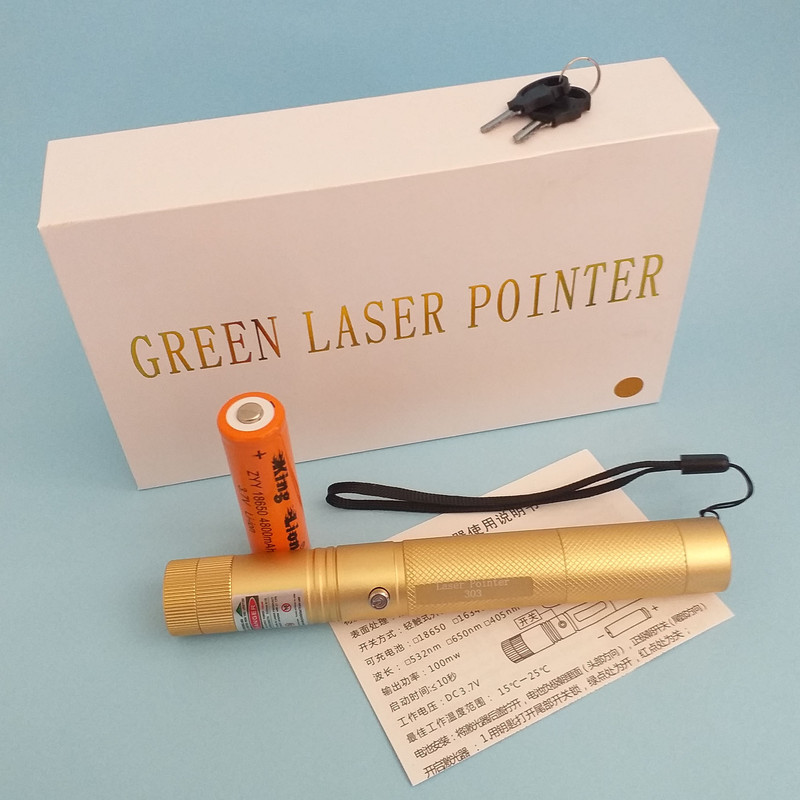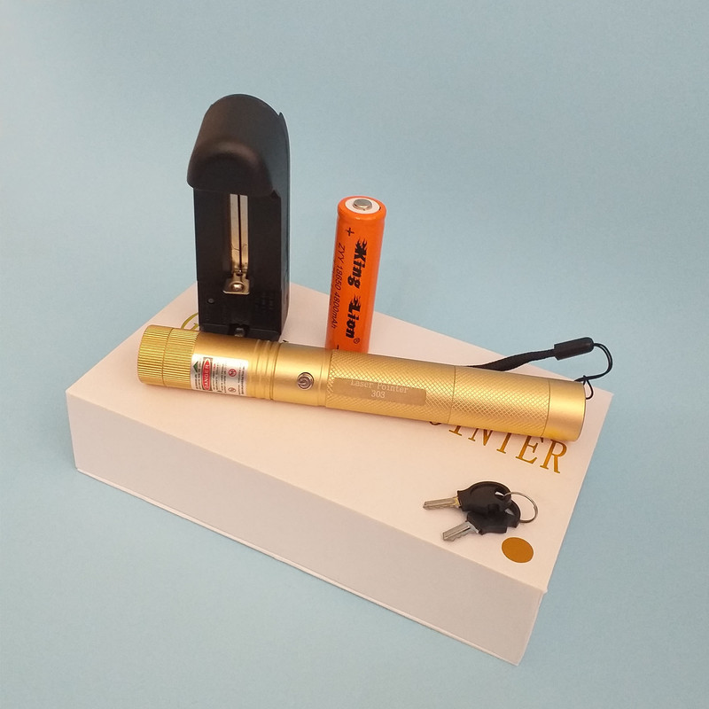 لیزر پوینتر مدل 303 با نور سبز GREEN LASER POINTER ، بدنه تمام فلز از جنس آلیاژ الومینیوم با روکش رنگ کوره ای ، قابلیت تنظیم شعاع نور با برد واقعی 12 کیلومتر ، دارای سَری جدا شونده ی رقص نور ستاره ای با چرخش 360 درجه ، بهمراه باتری اورجینال مدار دار کینگ لئون King Lion با قدرت بی نظیر 4800mAh میلی آمپر ساعت و شارژر برق شهری و کلید قفل لیزر که در درون جعبه محصول موجود میباشند.