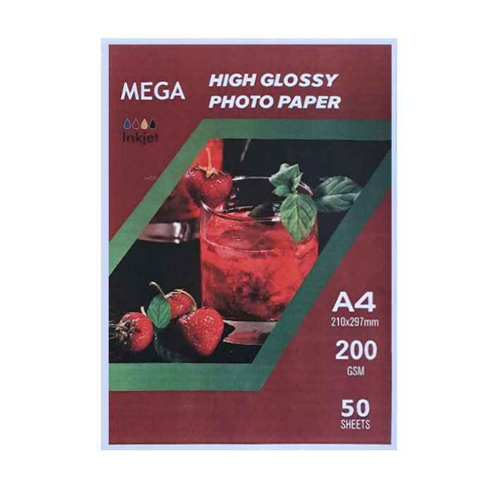 کاغذ چاپ عکس گلاسه مگا کد 200 سایز A4 بسته 50 عددی