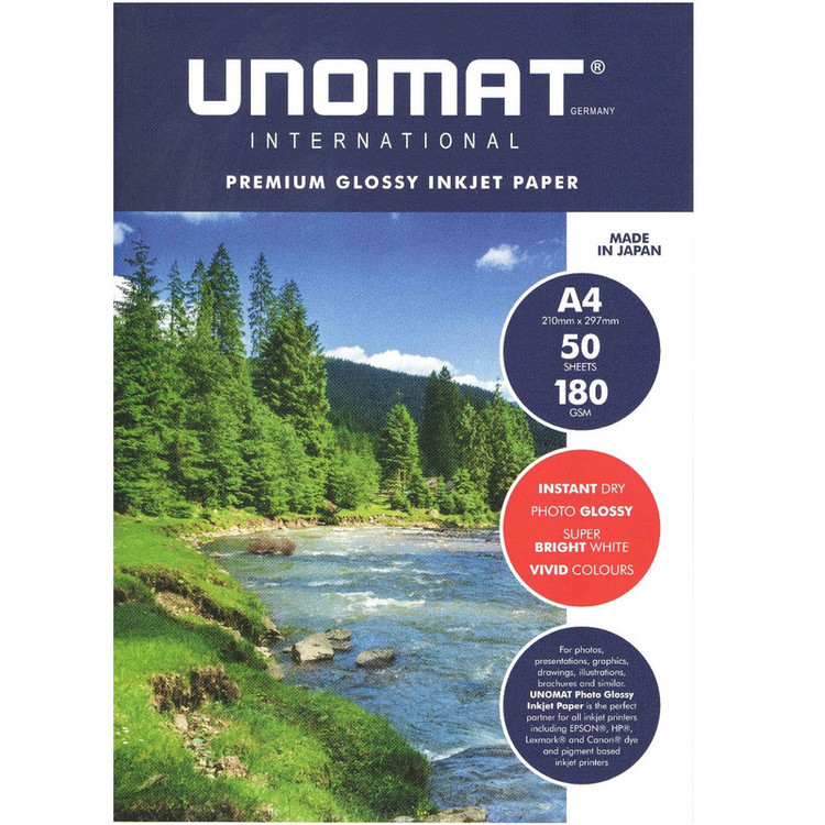 کاغذ چاپ عکس فتوگلاسه یونومات مدل 180g سایز A4 بسته 50 عددی