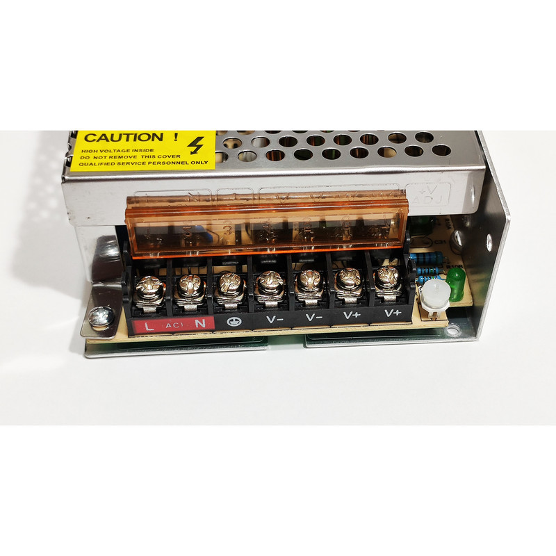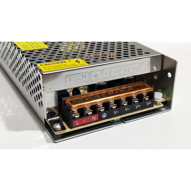 آداپتور سوئیچینگ از جمله آداپتور هایی است که برای تبدیل جریان متناوب (AC) به جریان مستقیم (DC) به کار میرود. آداپتور سوئیچینگ میتواند ولتاژ بالای برق را پایین بیاورد تا برای دستگاه الکتریکی قابل استفاده باشد.آداپتور سوئیچینگ 12 ولت 15 آمپر مدل S-180-12 ، ورودی این سوئیچ برق 110 یا 220 ولت متناوب (AC) میباشد و خروجیش برق 12 ولت مسقیم (DC) و شدت جریان این آداپتور 15 آمپر میباشد.این سویچ ها در میان قطعات تشکیل دهنده خود یک تنظیم کننده جریان دارند.این تنظیم کننده میتواند راندمان سوئیچ ها را در حد زیاد بالا ببرد و کارایی زیادی در هنگام تغییر توان الکتریکی دارند.این دسته از آداپتور ها وزن بسیار کمتر و کارایی بالاتری نسبت به آداپتورهای ترانسی و ترانسفورماتورها دارند و برعکس بقیه آداپتور ها دارای روکش و بدنه پلاستیکی نمی باشند و جهت خنککنندگی بهتر دارای بدنه فلزی با حفره های متعدد جهت گذر هوا هستند. به همین علت این دسته از سویچ ها راندمان و عملکرد خیلی بهتری نسبت به بقیه آداپتور ها دارند.این آداپتور دارای یک کیس آلومینیومی است که برای حفاظت از مدار الکترونیکی داخلی منبع تغذیه در برابر ضربه ، گرد و غبار و شوک مکانیکی استفاده میشود. همچنین به برطرف کردن و انتقال حرارت ناشی از عملکرد منبع تغذیه کمک میکند. از آن جایی که مدار الکترونیکی این منبع سوئیچینگ دارای قطعات ولتاژ بالا می باشد ، توصیه اکید می گردد که در حین کار با منبع تغذیه ، از برداشتن کیس خودداری نمایید.این آداپتور دارای یک پتانسیومتر بر روی برد خود می باشد که برای تنظیم ولتاژ خروجی 12 ولت DC با دقت 15± درصد استفاده میشود. با تغییر مقدار پتانسیومتر ، میتوانید ولتاژ خروجی را به مقدار دلخواه خود تنظیم کنید. در کنار این پتانسیومتر ، یک LED نشانگر وضعیت نیز تعبیه شده است. این LED جهت نمایش وضعیت عملکرد صحیح دستگاه و وضعیت روشن و خاموش بودن آن کاربرد دارد.